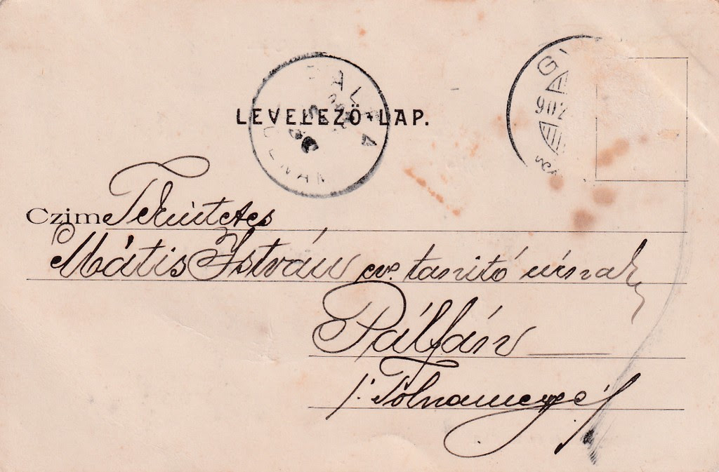 Tekintetes/ Mátis István ev. tanító úrnak/ Pálfára/ (:Tolnamegye:)