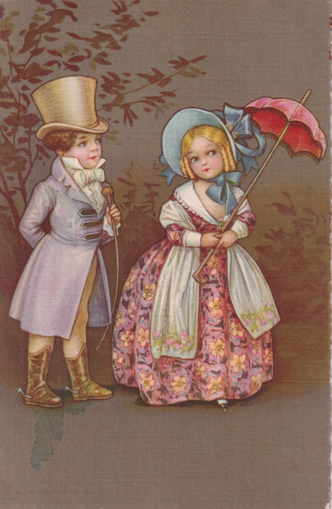 [369] Kisfiú és kislány, gavallérnak és úrleánynak öltöztetve